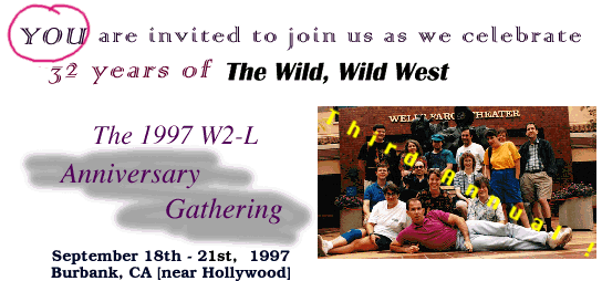This year, our annual Appreciation Dinner will be held September 20th, 1997 at the Uzbekistan Restaurant - an LA Times Top-10 winning restaurant. Uzbekistan features a number of excellent Russian dishes using a variety of meats, vegtables, and spice-content. There's something for every taste. The dinner theme will be "The Night of the Tartar". Our Guest of Honor is "James T. West". Dinner starts at 6:00 pm with a huge amount of exotic hors d'oeuvres. Expect music, dancing, talk, and lots of laughs.